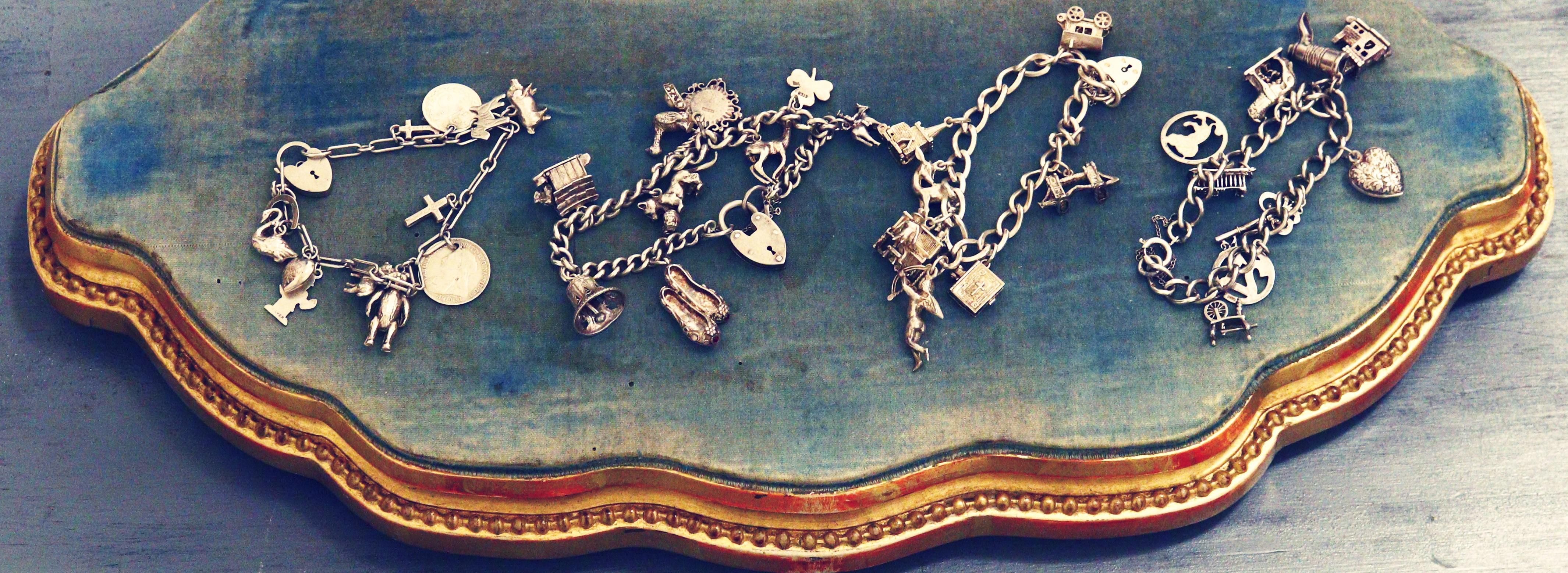 イギリス製 ヴィンテージシルバー ずっしり52gの贅沢チャームブレスレット